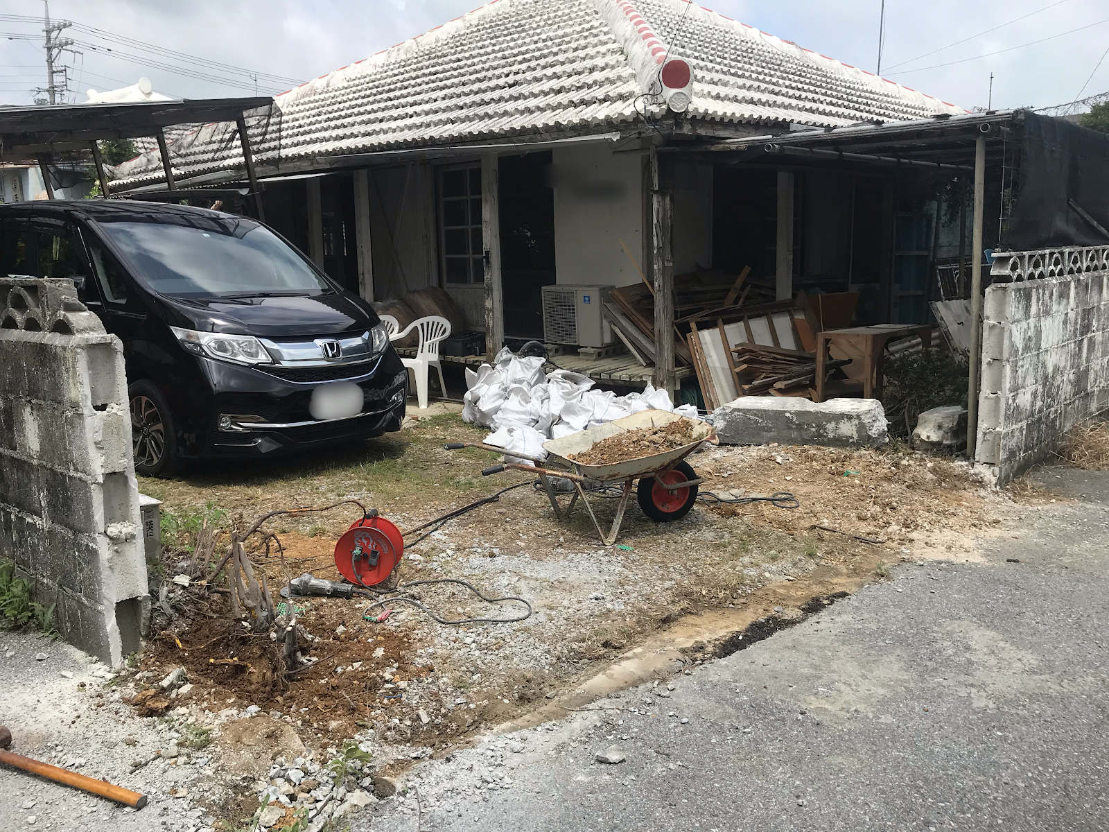 沖縄に移住してお義父さん達の住んでいる所へ転がり込みましたが、しばらく地盤が固まるまで住む所へ引っ越しする為に古民家をリフォーム中です。